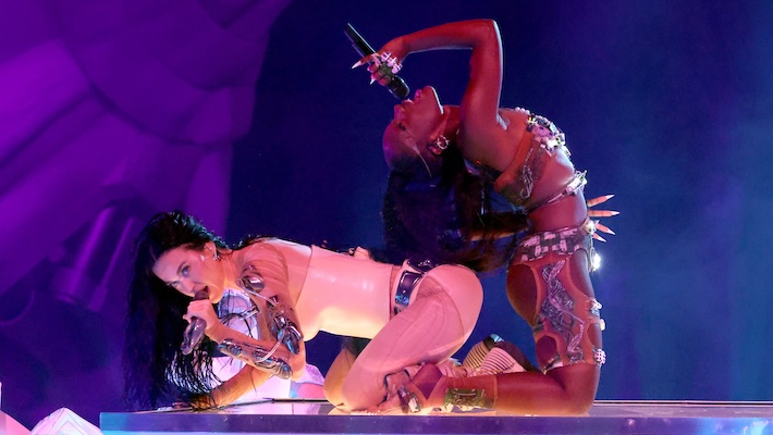 Adding to the excitement, Perry shared the stage with fellow artist Doechii for the debut performance of their new single “I’m His, He’s Mine,” a track from Perry’s upcoming album “143.” The duo’s electrifying performance featured suggestive dancing, including a moment where their lips nearly touched.