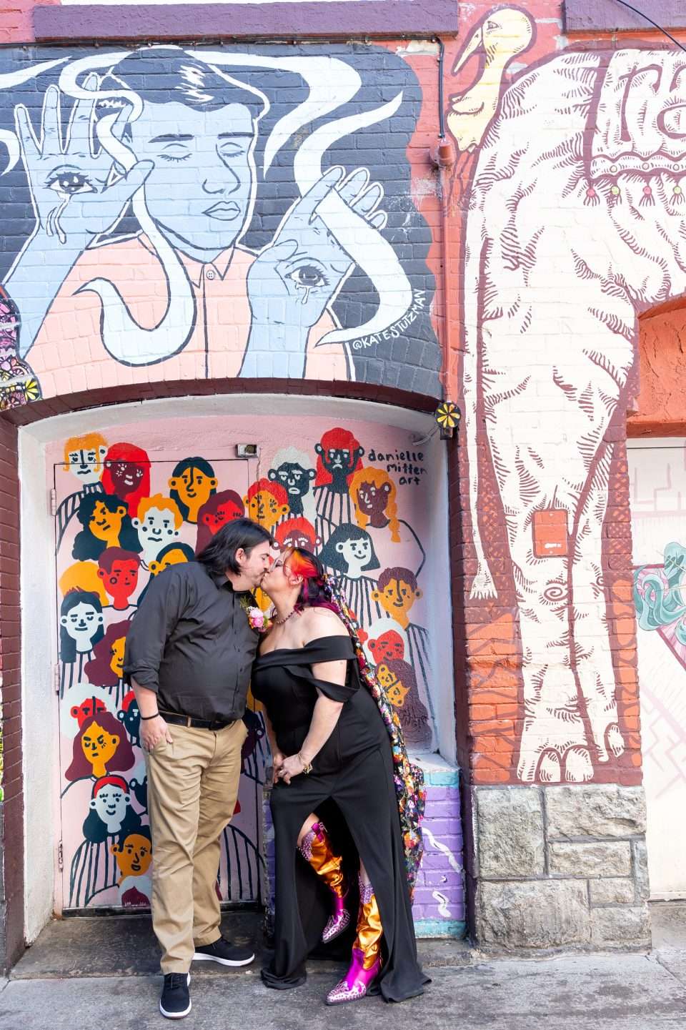 The wedding was a DIY masterpiece, with Brandi taking the lead on visual elements. “We’re not pastel people, and I wanted something that sparkled,” she explains. From the disco balls to the vibrant florals, the decor was a testament to their creative spirit.
