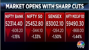 **Mumbai, October 3, 2024** – Indian stock markets opened in the red today, with the benchmark Sensex index falling by 600 points to 83,662.89. The Nifty 50 index also followed suit, dropping 200 points or 0.8% to 25,590.