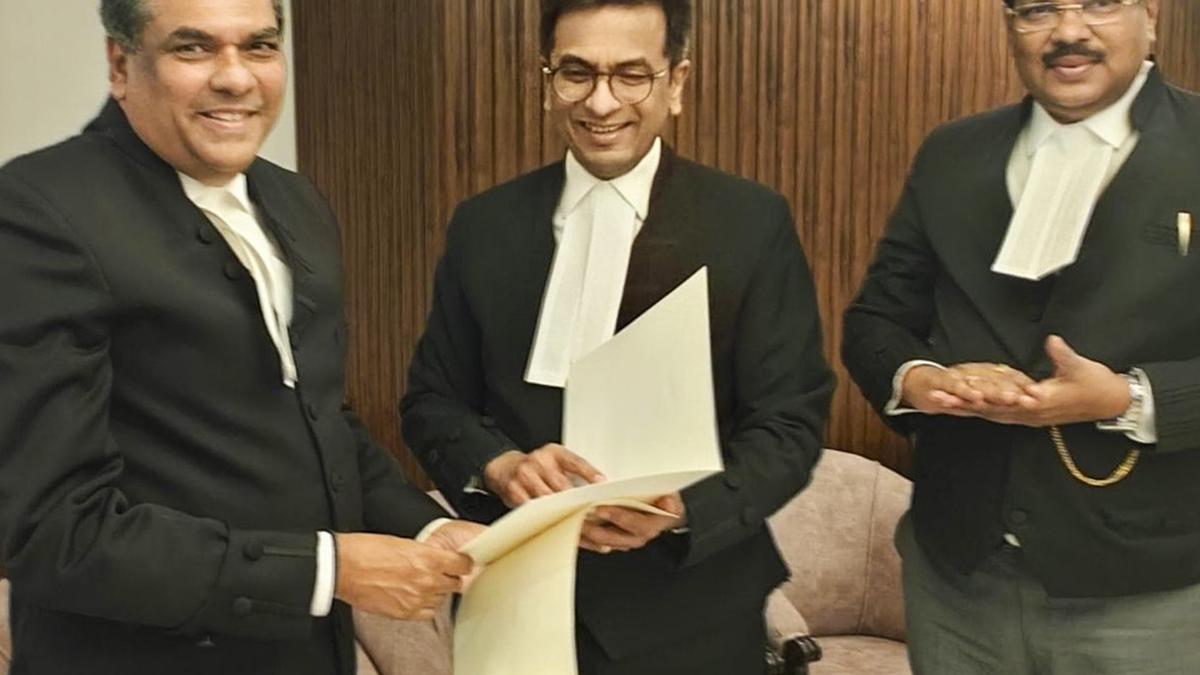 Thu Oct 24 15:47:06 UTC 2024: Published – October 24, 2024 09:17 pm IST – New DelhiChief Justice of India (CJI) Justice D.Y. Chandrachud shared a letter of recommendation naming Justice Sanjiv Khanna (L) as his successor. | Photo Credit: PTI