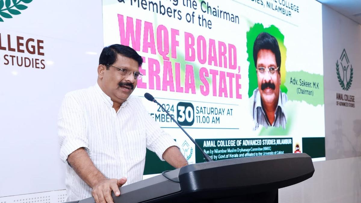 **Nilambur, Kerala – November 30, 2024** – The Kerala Waqf Board chairman, M.K. Sakeer, has assured the protection of all registered Waqf properties and pledged a solution to the ongoing Munambam land issue without compromising social harmony. Speaking at a reception for Waqf Board members at Amal College of Advanced Studies in Nilambur on Saturday, Mr. Sakeer stated that both the government and the Waqf Board are addressing the land dispute honestly, despite attempts by certain groups to spread misinformation. He emphasized that only properties with proper documentation will be recognized and protected by the board. The event was inaugurated by MP P.V. Abdul Wahab, with MLA P.K. Basheer presiding. Numerous other officials and Waqf Board members were also in attendance. Mr. Sakeer stressed the importance of balancing government policies with community needs while safeguarding religious assets.