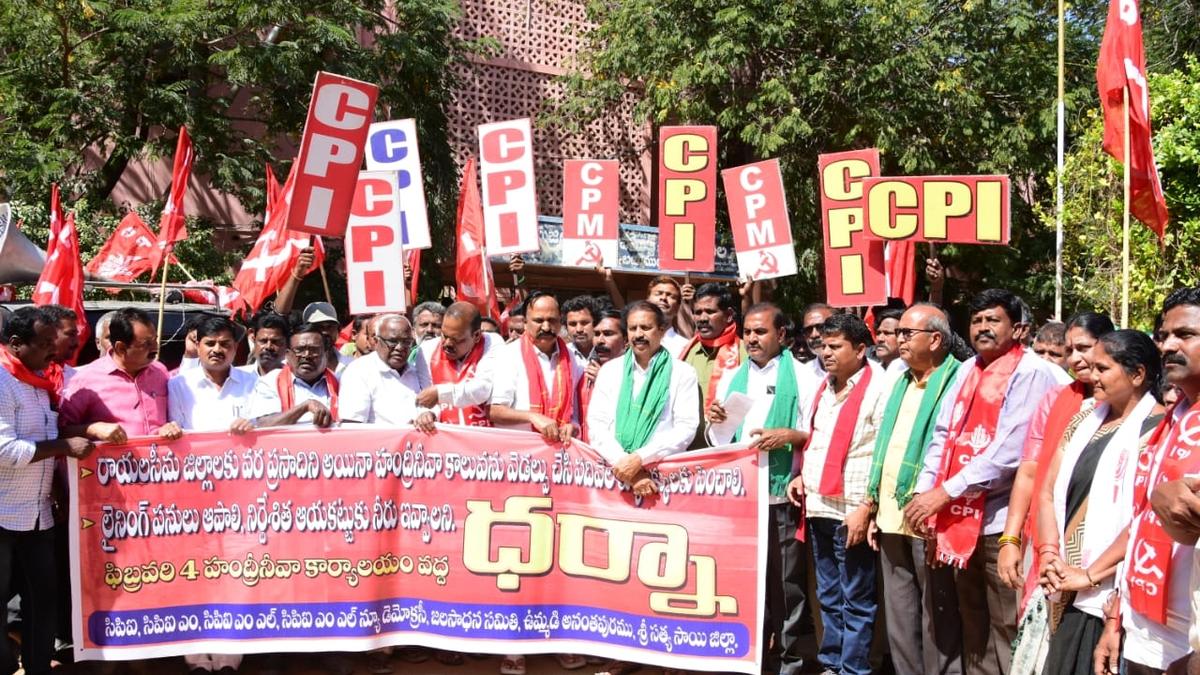 ANANTAPUR, Andhra Pradesh – CPI state secretary K. Ramakrishna led a protest on Tuesday demanding that the Andhra Pradesh government increase the capacity of the Handri-Neeva canal. The protest, organized by a joint forum of political parties, farmers, and civil society groups, calls for expanding the canal’s capacity to 10,000 cusecs.