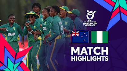 Nigeria celebrated their first-ever tournament win, defeating New Zealand in a rain-shortened match. Lilian Ude’s impressive bowling restricted New Zealand to 63/6, one run short of Nigeria’s 65/6.