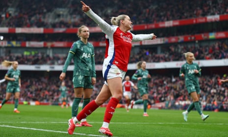 **London, England** – Arsenal demolished Tottenham Hotspur 4-0 in a record-breaking North London derby at the Emirates Stadium on Sunday, playing in front of a crowd of 56,784. Alessia Russo scored two goals, while Chloe Kelly made a triumphant return to the WSL, marking her Arsenal debut after a long hiatus.