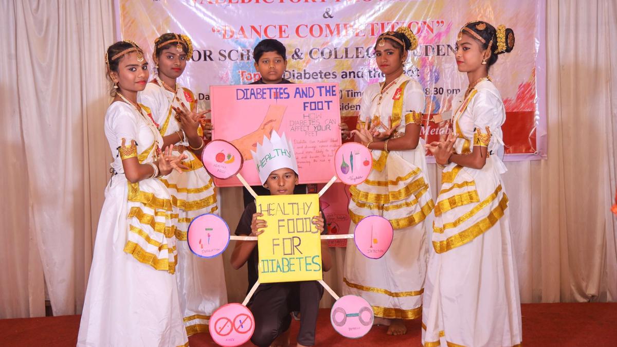 Kingston International Academy won first prize in the school category, while Lakshmi Garden School and LFC Girls Higher Secondary School took second and third. In the college category, CMC Vellore’s Chittoor campus secured first place with a classical dance performance highlighting the theme of diabetes and foot health. Dr. Vimal College of Nursing and St. John’s School of Nursing placed second and third, respectively. Several schools and colleges received consolation prizes. The event was presided over by retired professor Rosaline Jeyakaran, with judging by a panel of CMC professors.