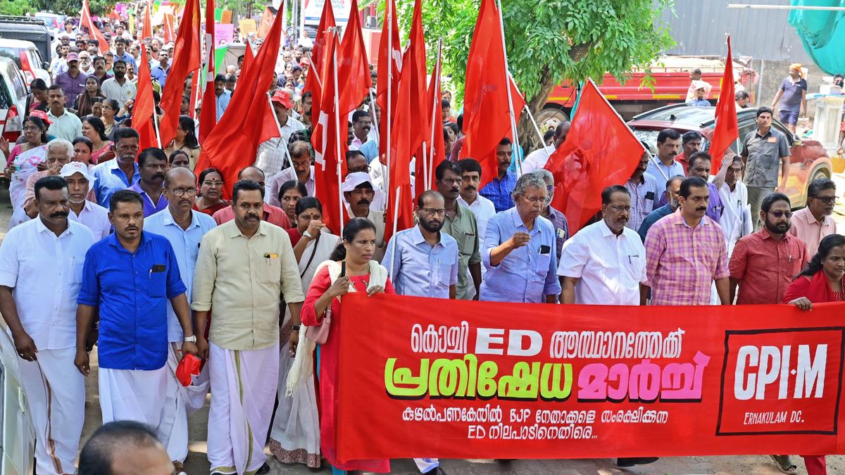 **KOCHI, KERALA –** The Communist Party of India (Marxist) (CPI(M)) staged a protest march to the Enforcement Directorate (ED) office in Kochi on Friday, condemning the agency’s alleged exoneration of Bharatiya Janata Party (BJP) leaders in the 2021 Kodakara money heist case.