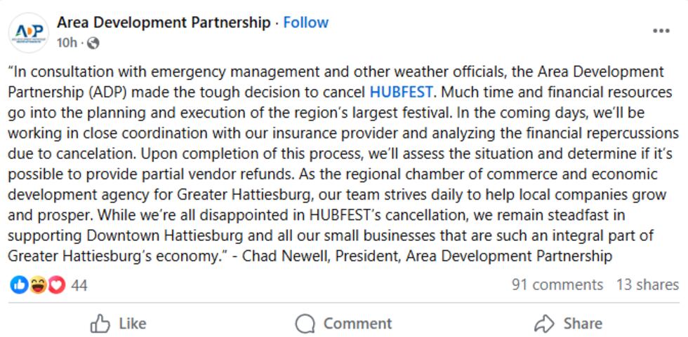 The Area Development Partnership (ADP) is currently investigating the possibility of providing partial refunds to vendors who lost out due to Hub Fest’s cancellation. A statement from ADP President Chad Newell indicated that the organization is working with its insurance provider to assess the financial impact and determine the feasibility of partial reimbursements. The “Front and Pine Fest” serves as a powerful example of Hattiesburg’s ability to adapt and support its local businesses even in the face of adversity.