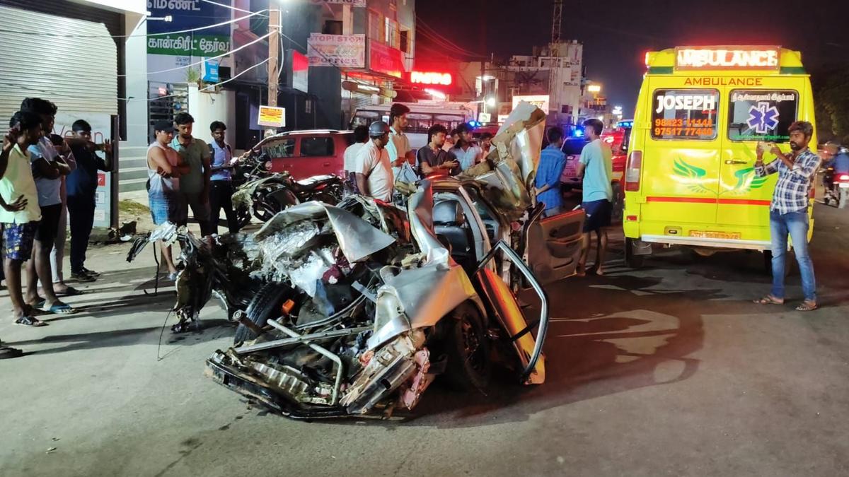 The car, carrying a family of six returning from Madurai, was sandwiched between the lorry and a container truck. The impact caused significant damage to the car, resulting in the immediate deaths of the driver, Saravanan, and Karthik’s father-in-law, Ayyanar. Karthik, his wife Nandini, her mother, a seven-year-old girl, and the one-year-old boy sustained injuries and were rushed to the Government General Hospital in Chengalpattu. Tragically, the infant succumbed to their injuries later.