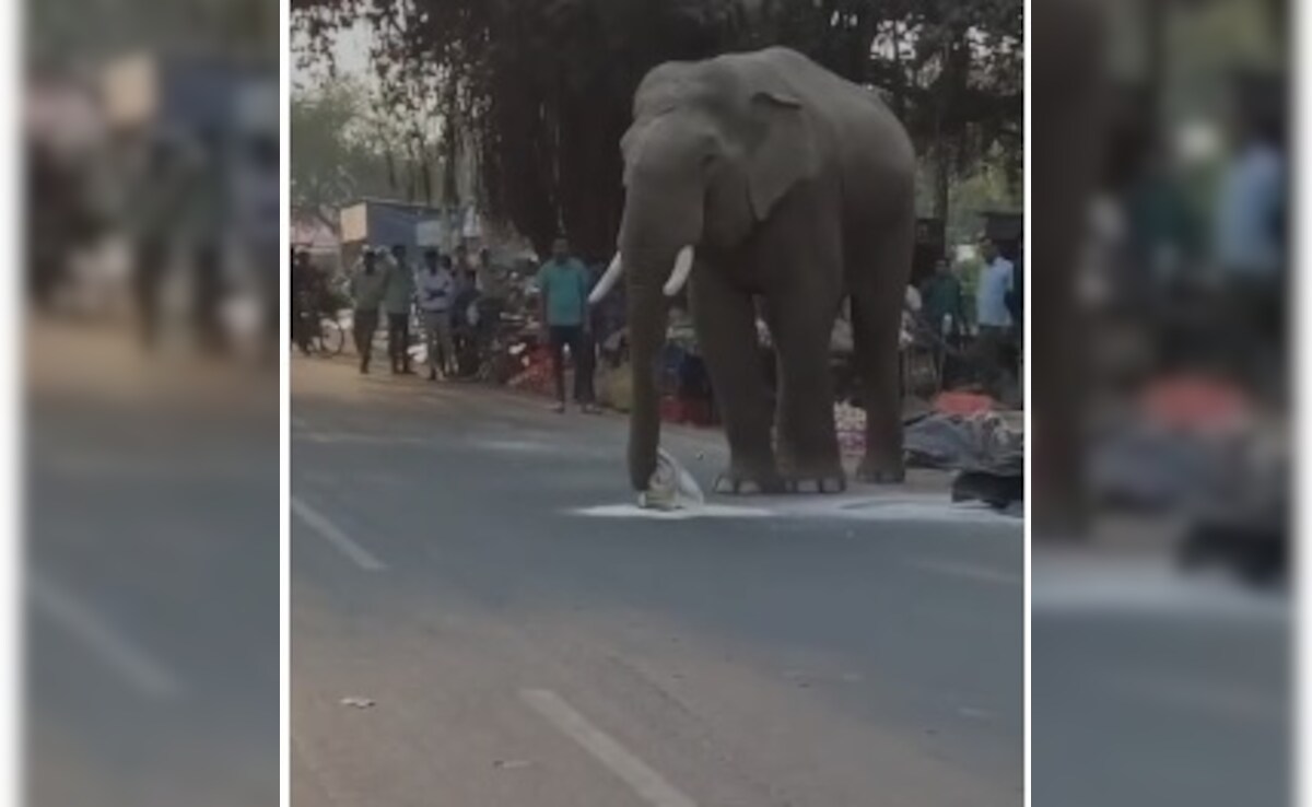 **HARIDWAR, Uttarakhand –** A video currently circulating online shows an elephant casually strolling through a Haridwar village, brazenly stealing a bag of flour from a local market before calmly consuming it. The incident highlights the increasing frequency of wild animals venturing into urban areas in search of food.