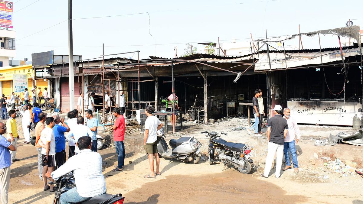 **Kalaburagi, Karnataka, April 13, 2025** – A fire ravaged four shops in the Ram Mandir locality of Kalaburagi on Sunday afternoon, causing significant damage. The blaze, which reportedly originated in an electric shop, quickly spread to a neighboring hardware store, an oil extraction unit, and a tea stall. While firefighters swiftly contained the fire, resulting in no injuries, the shops’ contents were completely destroyed. The cause of the fire is currently under investigation, and the extent of the financial losses is yet to be determined.