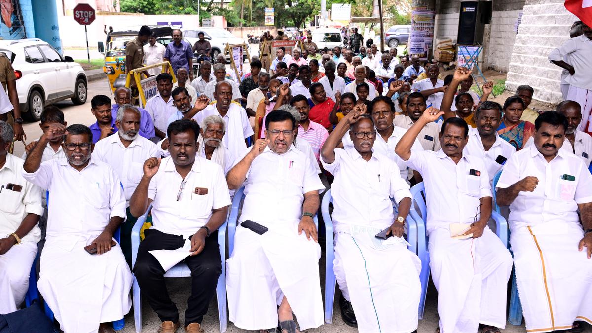 **DINDIGUL, September 3, 2025** – Over 100 farmers, joined by CPI (M) functionaries, protested in front of the Dindigul Collectorate on Wednesday, demanding fair compensation for land being acquired for a road project connecting Tiruchi, Natham, and Madurai Highway. The protest was led by Dindigul MP R. Sachithanantham.
