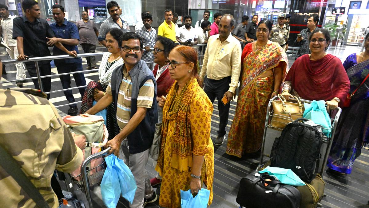 The Hindu newspaper reports on the successful rescue and repatriation of 144 Telugu people from Andhra Pradesh who were stranded in Nepal. An Indigo flight chartered by the Andhra Pradesh government flew them from Kathmandu to Visakhapatnam and Tirupati. Another 34 Telugus returned through border crossings. The rescue operation was led by Minister Nara Lokesh, who coordinated with various agencies to ensure the safe return of the citizens.