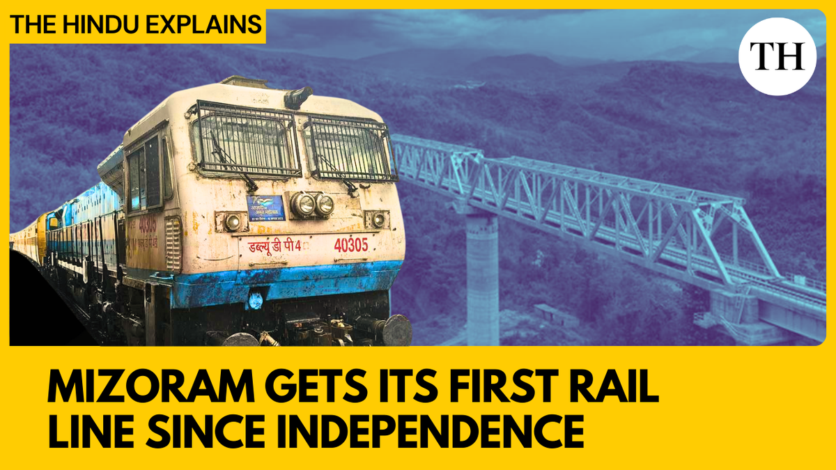 The Hindu reports that Mizoram is now connected to India’s railway network for the first time. The Bairabi–Sairang railway line, a 51.38 km project costing ₹5,021 crore, links Aizawl to Silchar in Assam. This reduces travel time from ten hours by road to three hours by train and includes significant infrastructure like numerous tunnels and bridges. The article appears under a collection of sections of The Hindu which include India’s perspective on world affairs, Film, Technology, Science, Data, Health and Books.