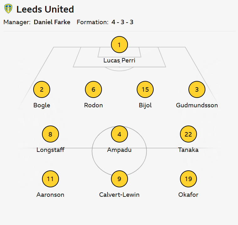 Leeds United manager has opted for four changes to the team that lost 2-0 to Burnley. Lucas Perri will start in goal, replacing Karl Darlow. Jaka Bijol, Noah Okafor, and Noah Okafor also come into the starting eleven, with Pascal Struijk, Anton Stach and Jack Harrison relegated to the bench.