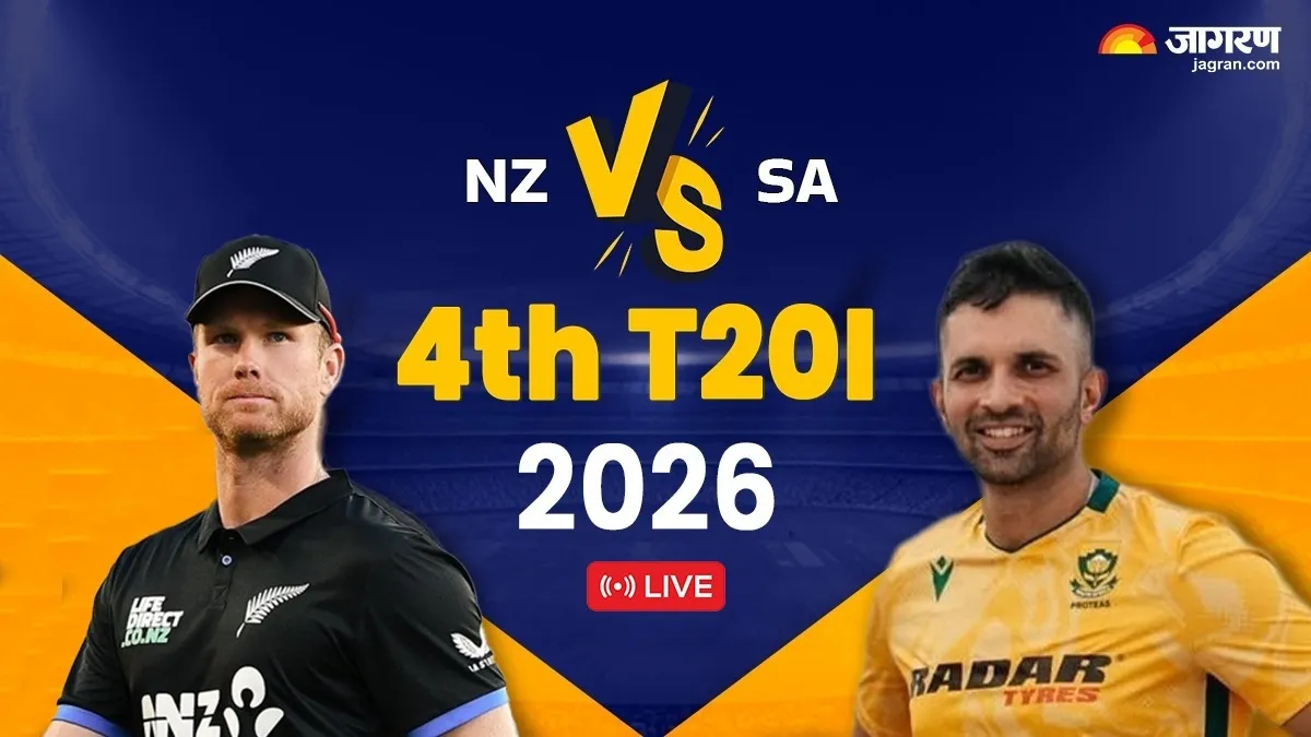 The fourth T20 International match between New Zealand and South Africa is underway at Wellington’s Sky Stadium. South Africa won the toss and elected to bat first, posting a total of 164/5 in their 20 overs, with wicketkeeper Connor Esterhuizen scoring a half-century (57 off 36 balls). New Zealand, currently leading the series 2-1, aims to clinch the series, while South Africa seeks a comeback to stay in contention. New Zealand lost their first wicket early in their chase of 165, with Caitain de Clark falling for 9.