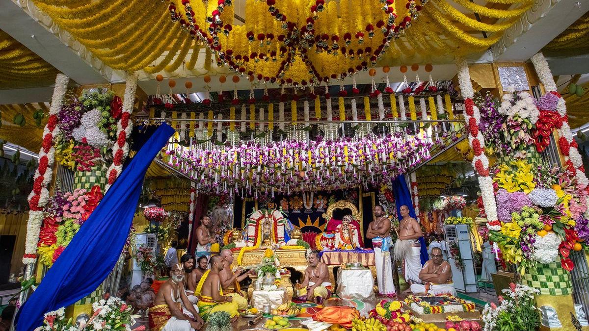 The Sri Kodandarama temple in Vontimitta, Kadapa district, was transformed into Ayodhya for the ‘Sita Rama Kalyanam’ celestial wedding on Wednesday, April 1, 2026. The Tirumala Tirupati Devasthanams (TTD) horticulture department decorated the venue with traditional and exotic flowers, recreating scenes from the Ramayana. The ‘Edurukolu’ ceremony, a pre-wedding ritual where the bride’s family welcomes the groom’s family, was a major attraction.