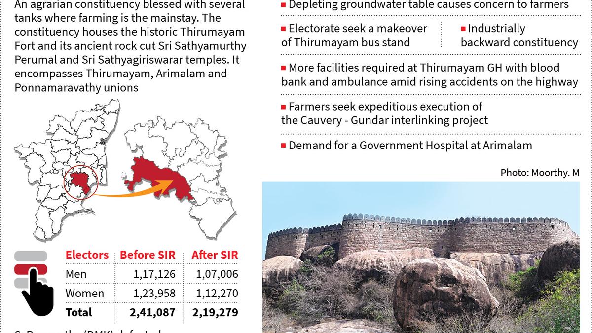 The Thirumayam Assembly constituency in the Pudukottai district of Tamil Nadu is facing significant challenges as it heads into the 2026 Assembly Elections. The predominantly agrarian region is grappling with severe water scarcity issues, including poor monsoons, dry waterbodies, and depleting groundwater levels. Farmers, who are solely reliant on agriculture for their livelihoods, are being disproportionately affected due to the lack of adequate water management and conservation measures. The constituency’s industrial backwardness is also forcing educated youth to migrate in search of employment.